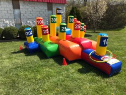 Täispuhutav aluses suurusega 3 x 2 meetrit. Mängus 10 rohelist ja 10 kollast rõngast.